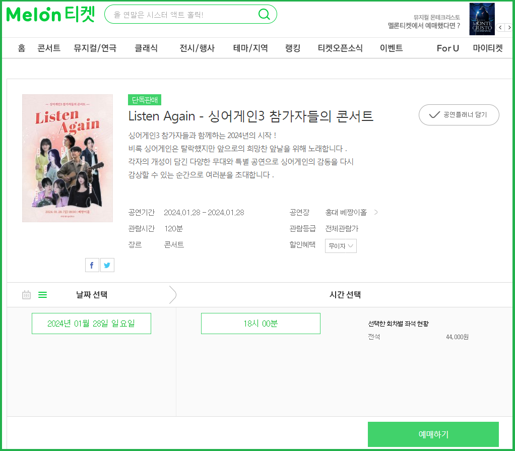 공연기간: 2024년 1월 28일(일) 오후 6시